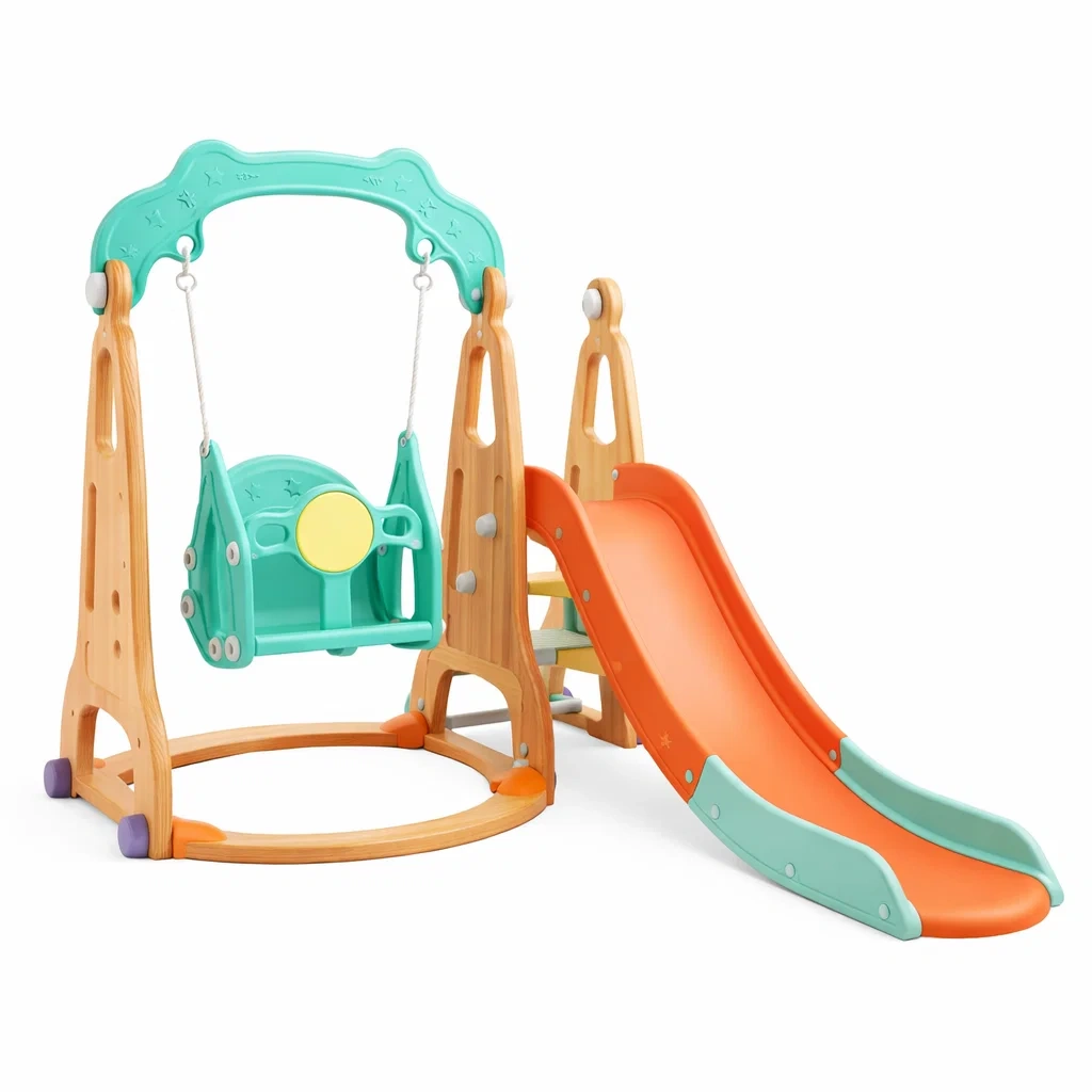 Structure de jeux pour enfants avec toboggan et balançoire en plastique haute densité