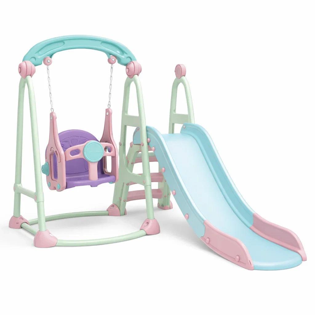 Structure de jeux pour enfants avec balançoire et toboggan en plastique