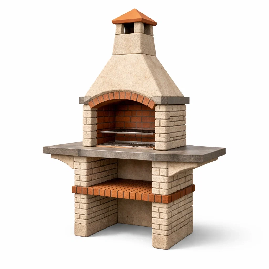 Ce barbecue est fabriqué en briques de terre cuite et ciment résistant à la chaleur.