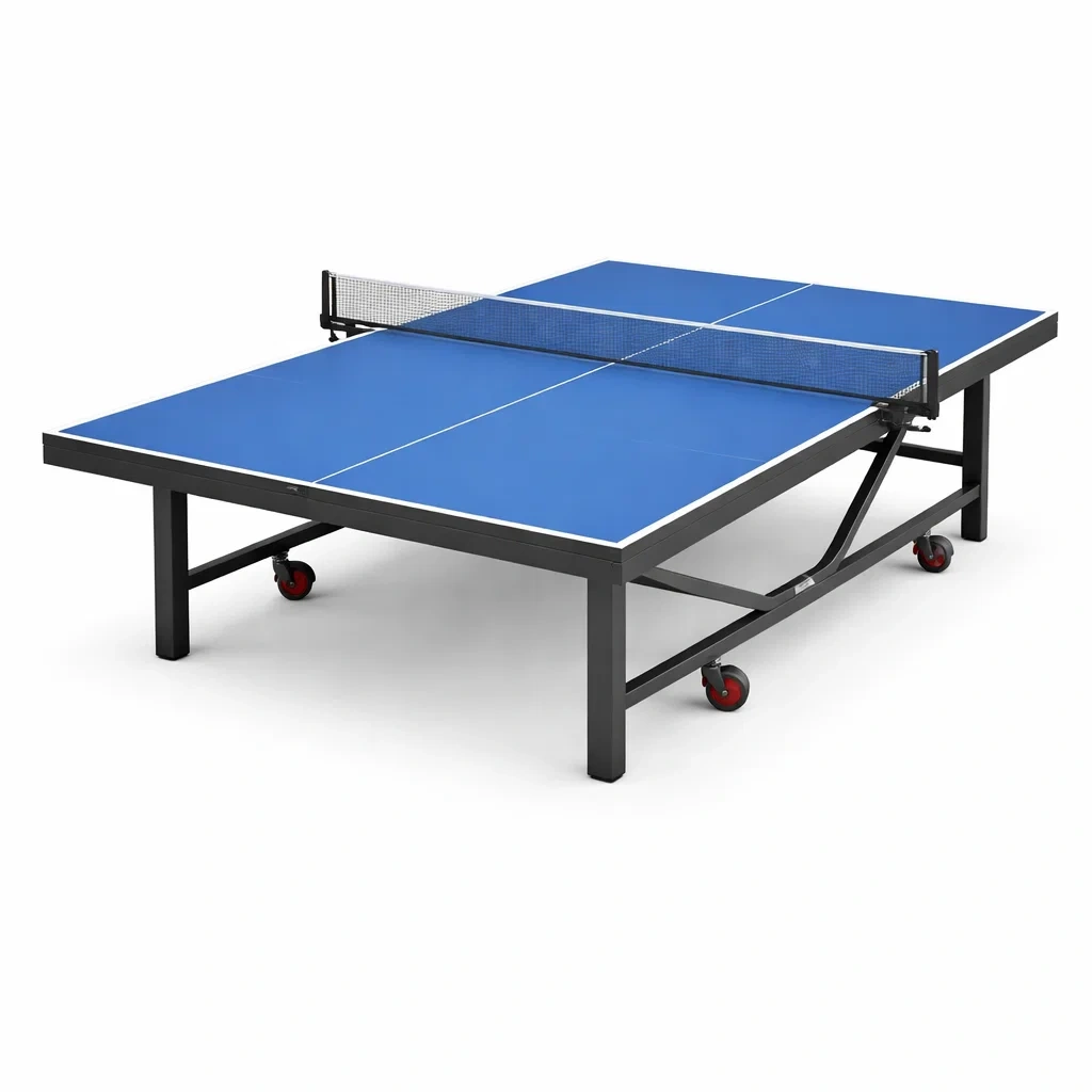 Cette table de ping-pong est équipée d'une surface en panneaux de fibres de densité moyenne (MDF) et d'un cadre en acier robuste. Elle offre des dimensions standard de 274 cm de longueur, 152 cm de largeur et 76 cm de hauteur. Le produit intègre également un filet de tennis de table et est conçu pour être pliable, facilitant le rangement. Les roues en caoutchouc assurent une mobilité pratique. Le poids total est de 95 kg.